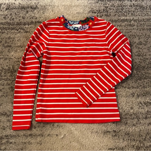 Hanna Andersson Red White Striped Long Sleeve Rashguard. Floral collar neckline. Size 120 (6/7).