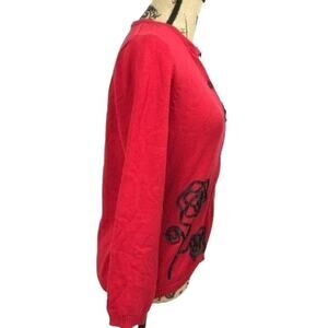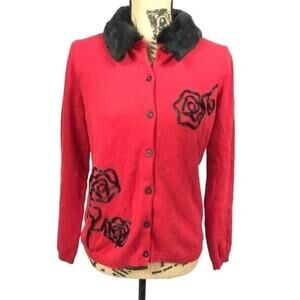Hanna Andersson Red Cardigan Button Front Black Removable Collar Womens Small