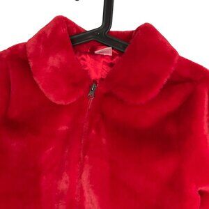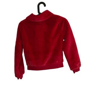 Hanna Andersson Red Faux Fur Bomber Jacket 10 Ribbed Hem Cuffs Satin Lining girl