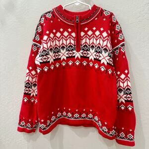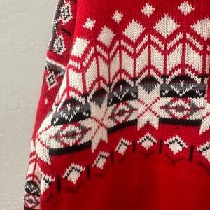 Hanna Andersson sweater size 120 (6-7). Bright Hanna red with black and white snowflake print. So cute for Christmas and the holidays. Excellent condition.