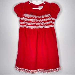 Hannah andersson Girls Red Ruffled Eyelet Holiday Cord Dress sz 5 worn once corduroy Christmas Valentine’s Day portraits party dress