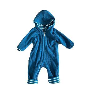 Hanna Andersson Reversible Bunting Sherpa Jersey 6-12 Months Striped Teal 70cm