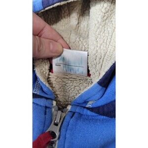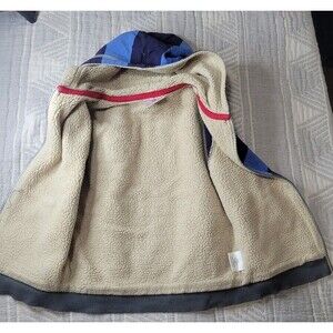 Good /fair used condition — typical wash wear; name written on tag (see photo), matted sherpa.