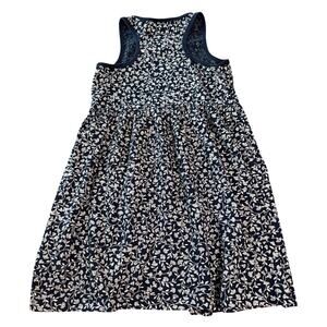 Hanna Andersson Size 8 Navy Blue Sleeveless Knee Length Floral Razorback Dress 100% Cotton Sustainable Fibers Natural Back to School Summer Autumn Spring Cottagecore Round Back Flowy Bohemian Boho Chic Twee