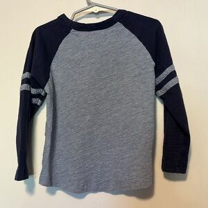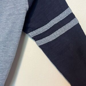 EUC, has writing on tag. Heather blue with navy slub color block tee