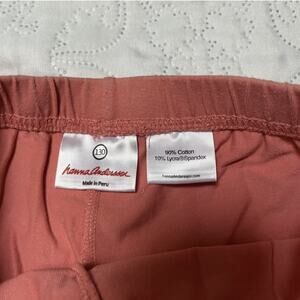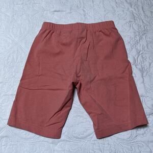 Hanna Andersson bike / tumble / cartwheel shorts in a coral faded red. Play condition, light wear and spots on the bottom. Size 130 / 8.