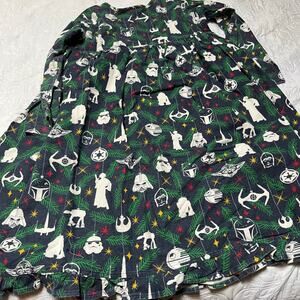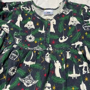 Hanna Andersson Disney Star Wars flannel pajama nightgown. Long sleeve pajamas in Star Wars print with ruffle bottom. Good condition, some fading / wash wear. Size 150 / 12.