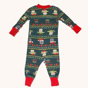Hanna Andersson Star Wars Mandalorian Grogu Sleeper Size 3-6 Months Green Multi Organic Cotton. Sleeper is in good preowned condition, with minor wash wear. 100% organic cotton. Fair Isle style holiday print in green, featuring Grogu (Baby Yoda) with Santa hat, and reindeer antlers, The Mandalorian helmet with Santa hat, and Boba Fett helmet in white, red, light green, and gold. Zipper closure, with tab and snap at neckline.