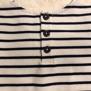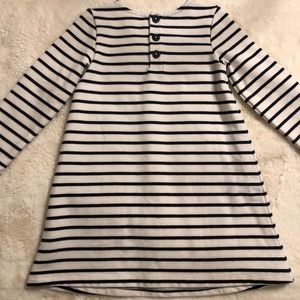 Hanna Andersson navy and white striped dress with adorable floral bow, size 100 (4). Three-button closure at back. Great condition and such a sweet dress!