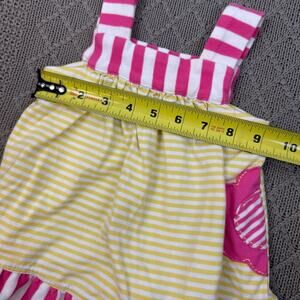 Adorable Hanna Andersson sun shower sunny dress with pink and yellow stripes. Features a cute pink pocket detail.