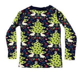These precious pajamas, feature a woodland, bunny and Christmas tree print in a variety of vibrant colors on a navy blue background. It is a two piece set with a long sleeve top and long pants. Size 90 (3)
