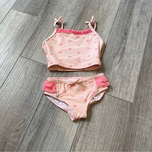 Hanna Andersson Toddler Girl 2PC Swimsuit - Pink Bow Bikini with Ruffles Summer
