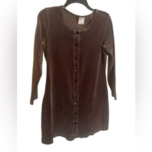 Hanna Andersson Velvet Brown long Sleeve Button Down Dress size Medium