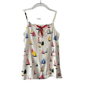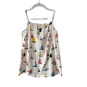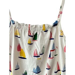 Hanna Andersson White Sailboat Print Tank Top Cute Bow Keyhole Back Detail Sz 8