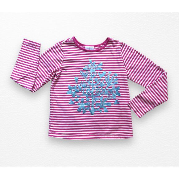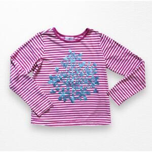 Long sleeved top from HA in size 140 (US 10). Bright pink stripes with a metallic blue wildflowers graphic. VGUC.