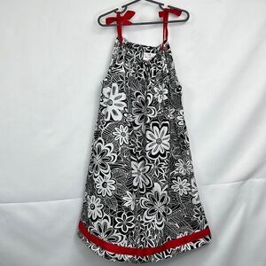 Hanna Andersson black and white floral sundress with red accents EUC size 8