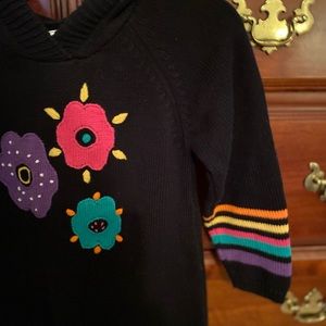 Hanna Andersson black sweater w/bright color flowers & stripes and hood