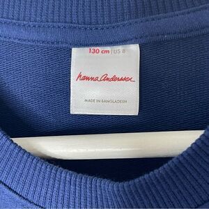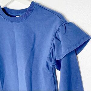 Hanna Andersson fleece lined navy blue crew neck sweat shirt with ruffles - 8