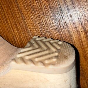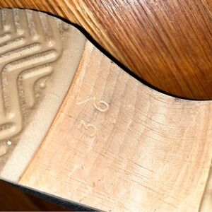 Gently pre loved great condition! One tiny spot on inside left clog with a tiny hole in the suede as seen in picture.