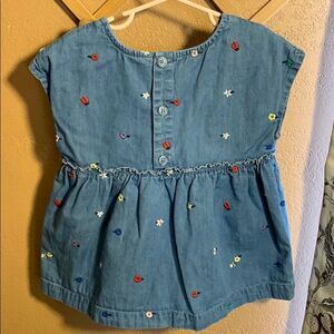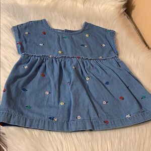 Hanna Andersson Embroidered Chambray Popover Top Size 5. Lined with soft 100% cotton. Intricate embroidery details, flowers and ladybugs.