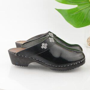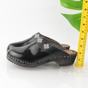 Hanna Andreson Womens Swedish Clog Size 39 8 Black Patent Wooden Platfrom Shoes