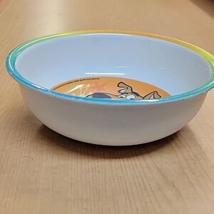 Cozy blue blanket featuring Scooby-Doo design.Approximately 42" x 60" Includes two characters..Velma and Fred. We have also included a Scooby Doo bowl 5 1/2". The blanket has some marks on it. Possibly paint? But no tears or holes. We have added a dvd to complete the bundle