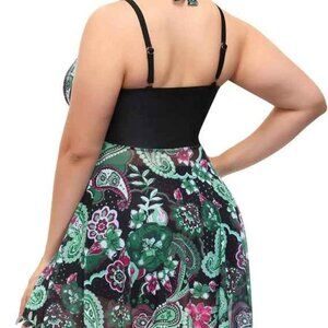 Hanna Nikole Green Floral Separated See-Through Mesh Swimdress Size 24W | NWT