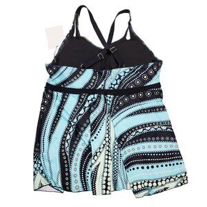 Hanna Nikole Plus Size 26W Womens Swim Dress Shorts Set Blue & Black Patterned