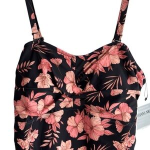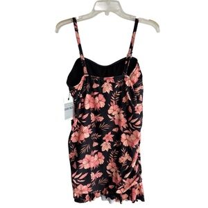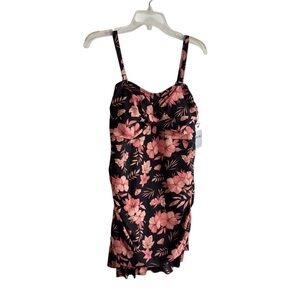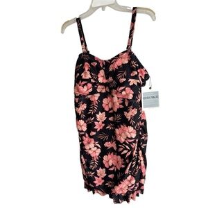 Hanna Nikole Tankini Top Swimdress Plus Size 16W Black Pink Floral Slimming NEW
