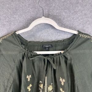 Hanna Semi Sheer Women's Floral Embroidered Top Sequin Boho Peasant Prairie XL P