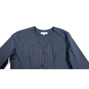 Hanna for La Journee Navy Striped Top Ruffles Blue Button Up Shirt 3/4 Sleeve 3