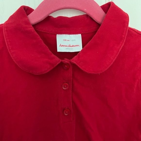 Hanna organic cotton Peter Pan red shirt, size 8, excellent condition. Notice the sleeve which makes it a bit more dressy then a regular t-shirt. I don’t believe we had a chance to wear it ever.