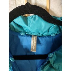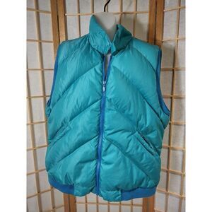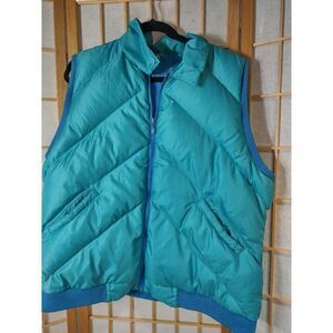 Classic puffer vest from Hanna Andersson. Size XL. Teal with blue accent. Shell 100% polyester. Fill 80% down, 20% polyester. Lining 100% nylon. Machine washable. Made in China. Excellent condition. Nonsmoking home.