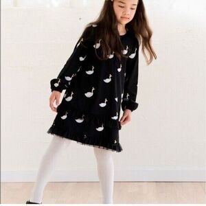 Hanna Andersson Black Swan Queen Embroidered Mesh Dress Sz 150 or US 12 EUC