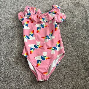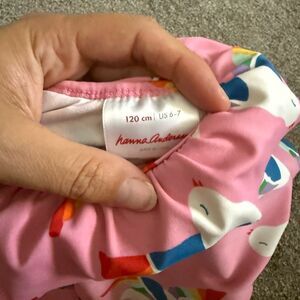 Hanna Andersson Pink Rainbow Birds Ruffle Swimsuit Sz 120cm