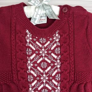 Hanna Andersson Short Sleeve Fair Isle Knit Sweater Burgundy Cotton Wool Dress 2