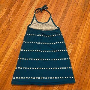 Hanna Andersson blue/white x pattern halter dress. Adjustable tie. Size 3. Great condition.