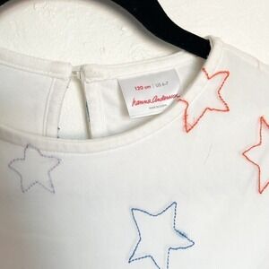 Hannah Andersson Tulle Embroidered Stars and Moon Babydoll Dress 6-7 White