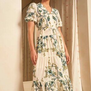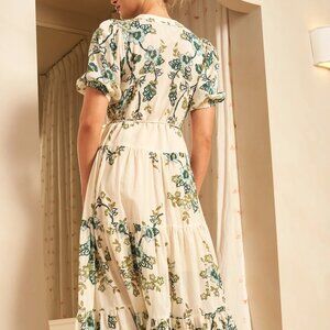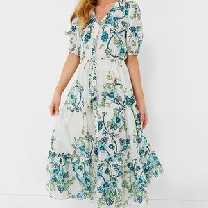 Introducing the Anyeta Short Sleeve Maxi Dress, featuring the enchanting Spring '24 Jasmine Azul Print, exclusively from Hannah Artwear.