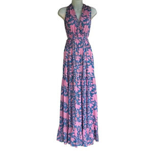 Hannah Artwear Chloe Floral Cross-Back Maxi Dress Halter Ties US Size 4
