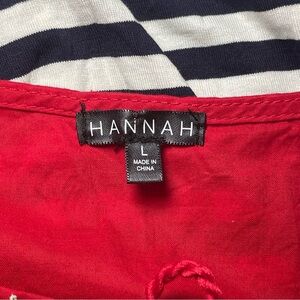 Hannah Blue White Stripe Red Boho Sleeveless Top Tassels Embroidery Large NWT
