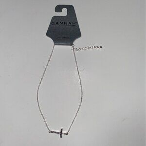 Hannah Brilliance Silver Tone Cross Necklace Women’s Adjustable Single Strand