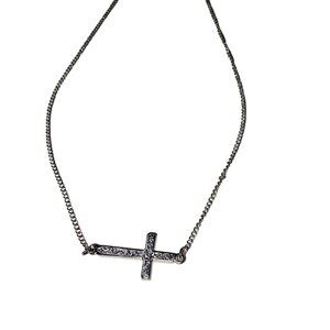 Hannah Brilliance Silver Tone Cross Necklace Women’s 15in Adjustable Single Strand
