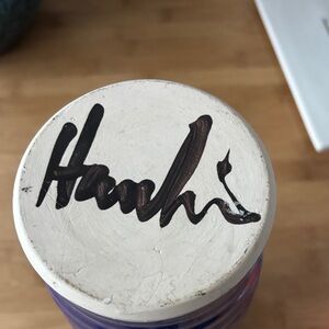 Stylish deep blue vase with ribbed design. Adds elegance to any room.