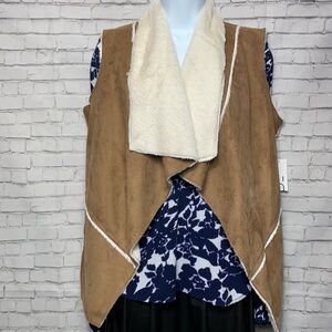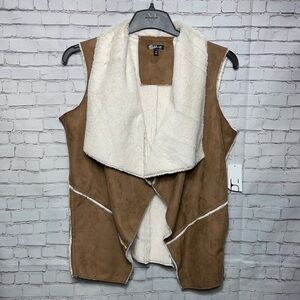 Hannah Faux Suede Faux Fur Vest Camel Color Size Small