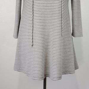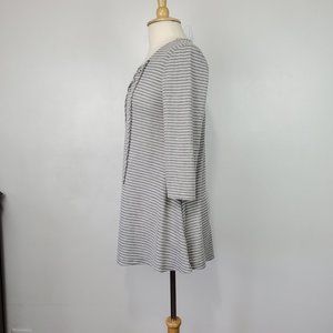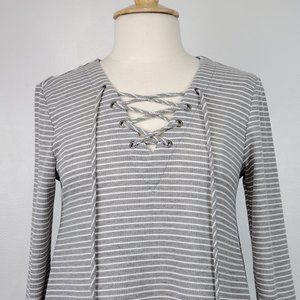 Hannah Gray White Striped Waffle Knit Grommet Lace-Up V-Neck Casual Top Size M