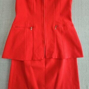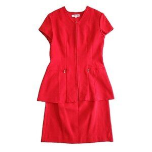 Hannah Hardy 2 Piece Skirt Suit Size 10 Red Fully Zip Cap Sleeve Fitted Blazer