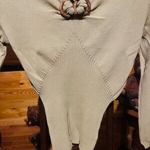 Hannah Jones New York 60'S Cropped Sage Green Knit Top with Wood Accents Size Small. MSRP $59
