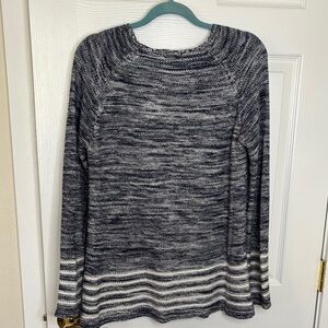 Hannah Navy and White V-neck Heathered Knit Tunic-Style Sweater Sz Lg