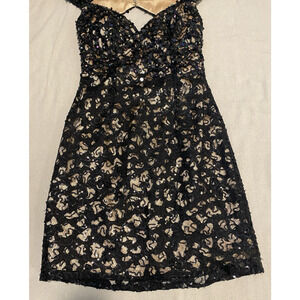 Hannah S Formal Dark Mini Dress Size 4 Sequin Black/Nude Lace Cocktail Party